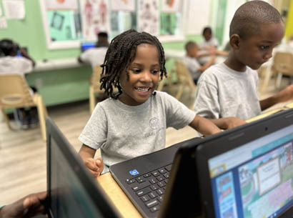 Students develop computer skills, operating various software applications, coding, and programming.